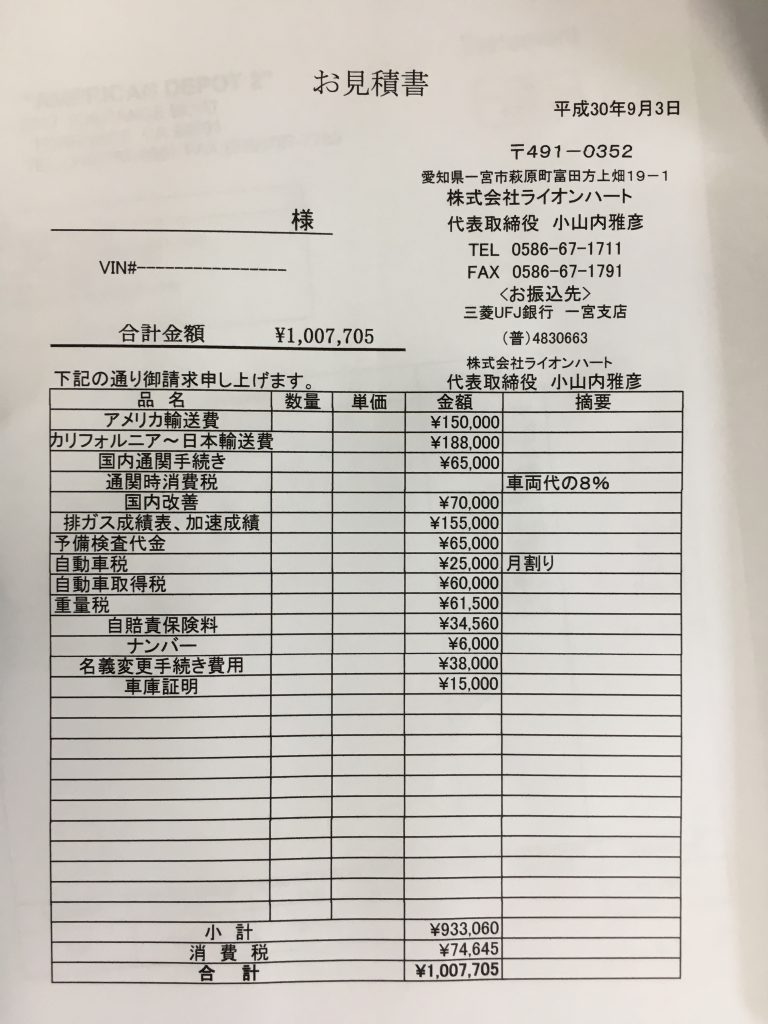 最近多くお問合せをいただくのが、「アメリカから日本に車両をもって来るのはいくらくらいかかるの?」「輸送はいくら?」「その他の費用がいくらい位かかるの?」といったご質問を多くいただきます。